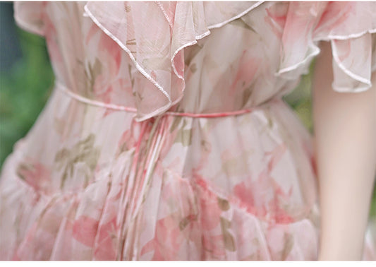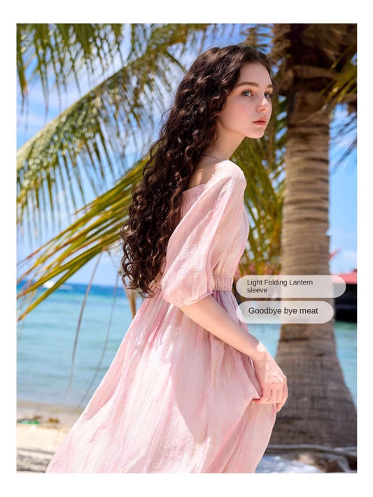 Gentle wind pink dress female summer new super nice temperament seaside vacation beach skirt
